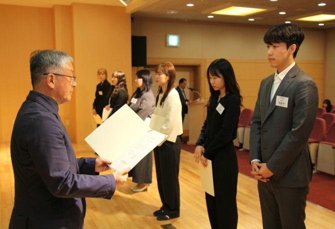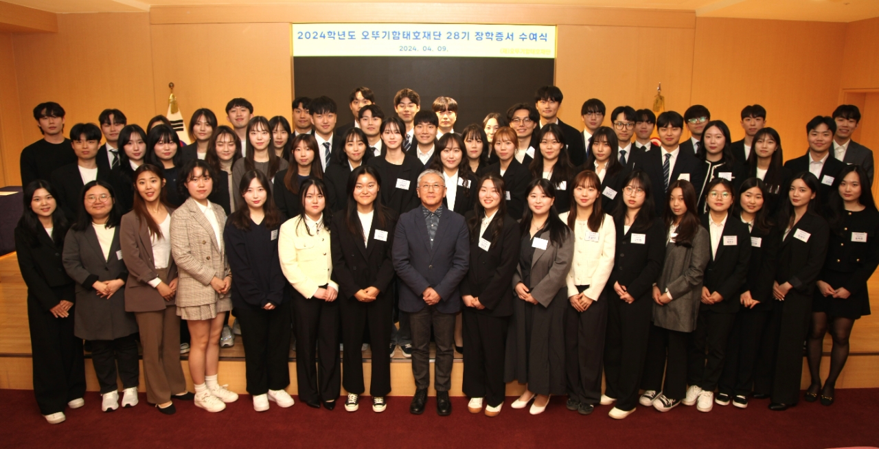 이미지 확대보기이날 행사에는 오뚜기함태호재단 임원들과 2024년 신규 장학생 55명이 참여했다. 개회 및 장학증서 수여, 함영준 오뚜기함태호재단 이사장의 격려사 등의 순으로 진행됐다. 함영준 오뚜기함태호재단 이사장이 학생들에게 장학증서를 전달했으며, 장학생 55명은 오뚜기함태호재단으로부터 2년간 학비 전액 장학금을 지원받게 된다.