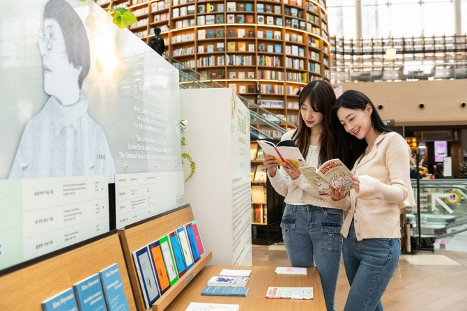 이미지 확대보기18일 신세계프라퍼티에 따르면 별마당 도서관은 한국문학번역원과 함께 내달 12일까지 세계를 매혹시킨 한국 문학을 주제로 ‘문학을 펼쳐 봄’ 도서 특별전을 진행한다. 서가 가득 봄 향기를 내뿜는 생화들과 함께 해외 문학상에서 수상 및 입후보한 한국 문학 작품의 원서와 번역서 총 82종을 선보인다.