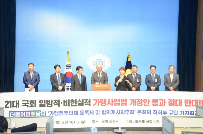 이어 "개정안이 시행되면 소규모 가맹본사는 고사하게 될 것이고 소속 가맹점들도 연쇄적으로 문을 닫게 될 것이다. 가맹점 권익을 신장한다는 명분이 오히려 소상공인인 가맹점주 피해로 이어질 것이 자명한데, 결과를 책임질 수 있을지 묻고 싶다"고 토로했다.