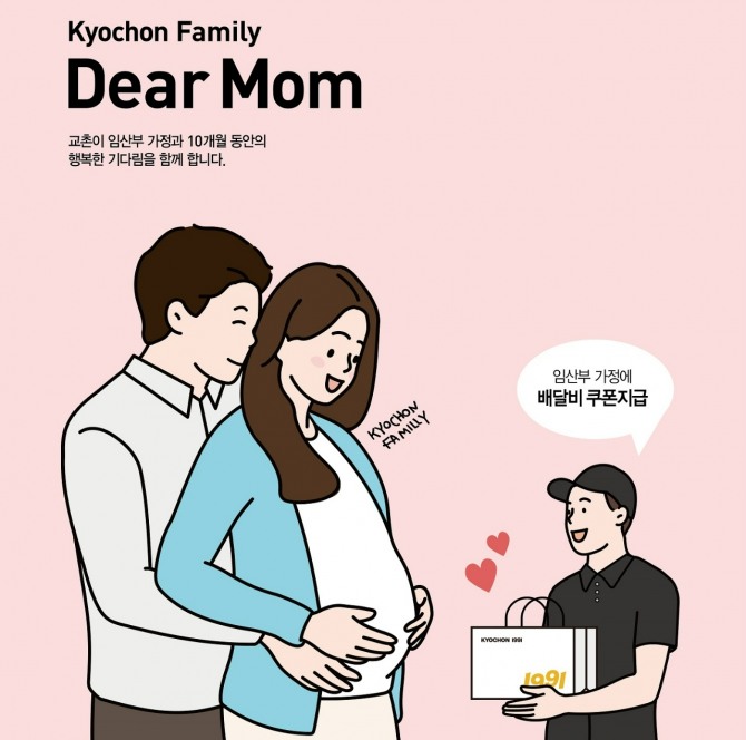 올 12월까지 1991명의 임산부 고객에게 교촌치킨앱 배달 주문 시 사용할 수 있는 4000원 할인 쿠폰 10장을 증정하며 따뜻함을 전한다.
