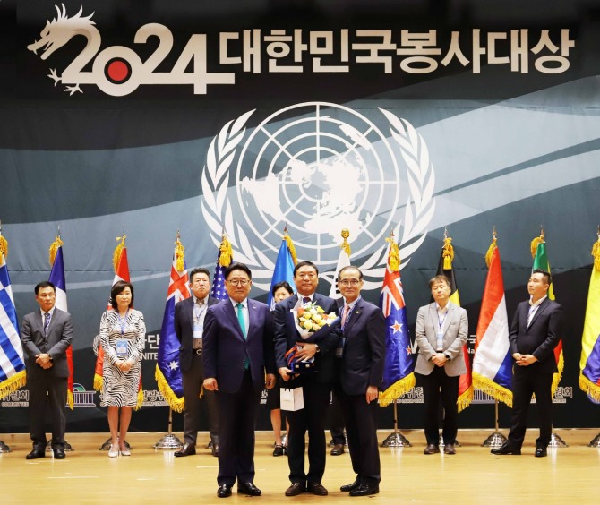 이미지 확대보기지난 2010년부터 이어지고 있는 대한민국 봉사 대상은 한국유엔봉사단 주최로 매년 국가와 지역사회 발전에 기여하고 나눔 봉사에 공을 세운 개인, 기관, 단체를 선정해 시상하는 행사다.