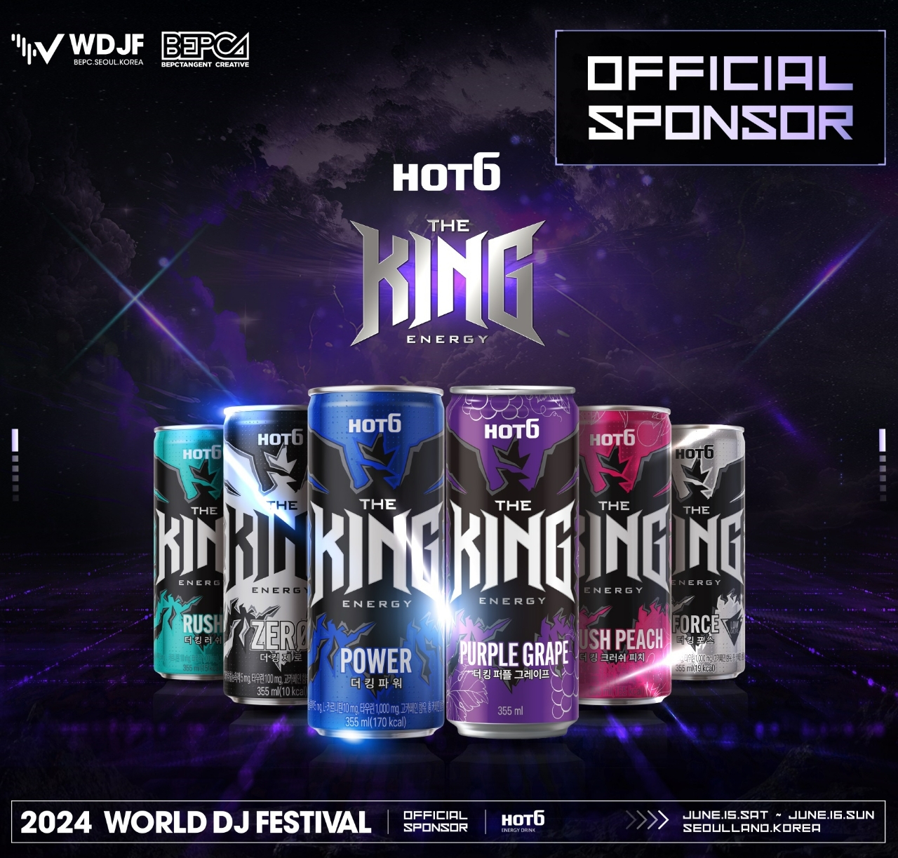 핫식스는 월드 디제이 페스티벌 2년 연속 공식 스폰서로 참여해 핫식스 더킹을 소개하는 부스를 운영한다. 부스에서는 올해 출시된 신제품 ‘핫식스 더킹 퍼플 그레이프’ 등 핫식스 더킹 6종을 시음할 수 있으며 포토존과 라운지도 운영한다.