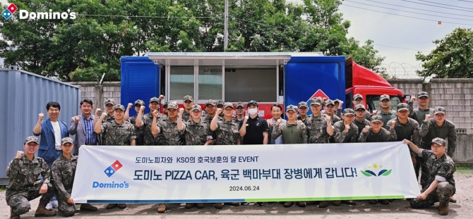 이미지 확대보기도미노피자는 지난 24일 파주 소재 군 부대에 방문해 군 장병들에게 파티카를 통한 피자를 후원했다고 25일 밝혔다. 이번 나눔 활동은 장병과 군인가족의 사기, 복지 증진을 지원하는 한국군사랑모임(KSO)과 함께 진행한 것으로, 도미노피자의 사회 공헌 활동 중 하나인 파티카(Party Car)를 통해 따뜻한 피자를 전달했다.