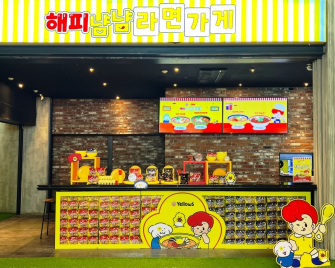 우선, 음식을 즐기는 공간인 씨네펍(CINEPUB)에서 ‘해피냠냠 라면 가게’를 운영해 오뚜기 대표 라면 제품을 선보인다. 진라면 순한맛, 마라진라면, 마라 짜슐랭, 마슐랭 마라탕면 등 총 4종의 라면을 맛볼 수 있다. 특히 마라 진라면과 마라 짜슐랭은 오뚜기의 마라장을 사용한 특별 레시피로 조리하여 이색적인 라면을 즐길 수 있다.