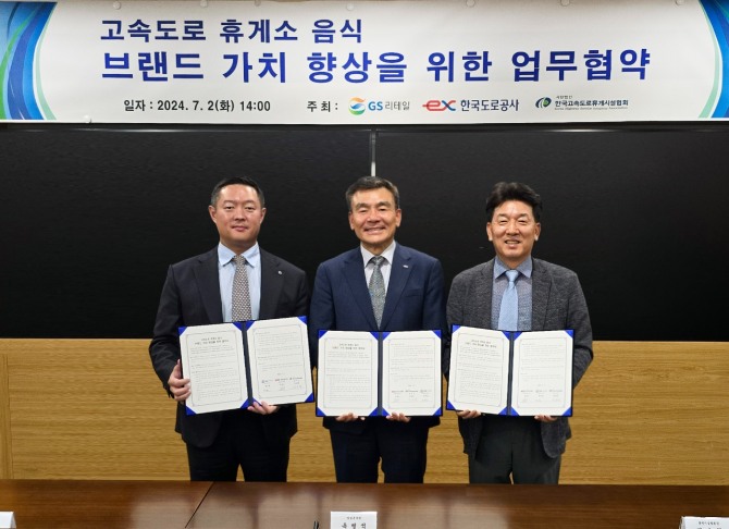 이미지 확대보기GS25는 지난 2일 성남시 수정구에 위치한 ‘한국도로공사 ex스마트센터’에서 한국도로공사와 ‘고속도로 휴게소 음식 브랜드 가치 향상을 위한 업무협약’을 체결했다고 3일 밝혔다. 협약식에는 허치홍 GS리테일 MD본부장, 홍성준 GS리테일 간편MD부문장과 옥병석 한국도로공사 영업본부장, 정승환 한국고속도로휴게시설협회장 등이 참석했다.