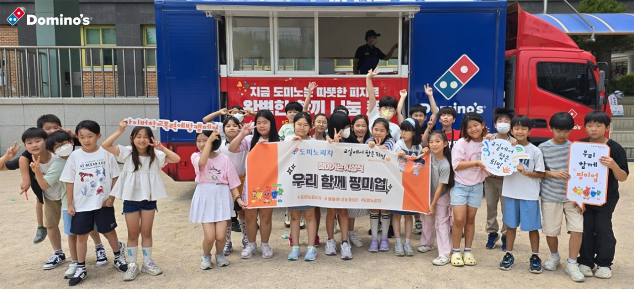 이미지 확대보기도미노피자는 지난 4일 월드비전의 사이버 학교폭력 예방 캠페인인 ‘교실에서 찾은 희망’에서 우수 학급으로 선정된 파주 운정초등학교는 학생들의 참여도와 적극성 등에서 좋은 평가를 받아 찾아가는 시상식 대상 학교로 지정됐다고 5일 밝혔다. 도미노피자는 운정초등학교에 피자 제조시설이 탑재된 파티카를 통해 피자를 전달, 학생들에게 즐거운 추억을 제공했다.