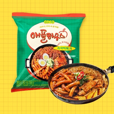 지난 1986년부터 이어온 애플하우스의 비법이 담긴 소스, 춘장과 조청이 들어가 달짝찌근하면서 중독성 있는 소스 맛이 일품이다. 즉석떡볶이에 필수 재료인 쫄면, 밀떡, 어묵 그리고 국내산 양배추까지 들어있어, 밀키트 하나로 어디에서나 간편하게 조리할 수 있다.