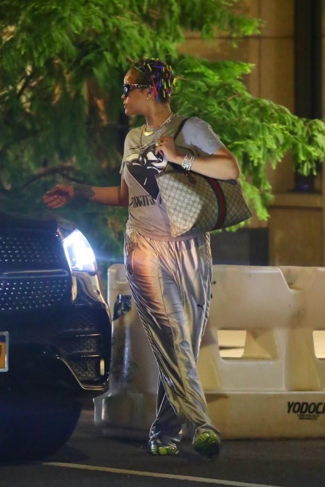 뉴욕에서 리한나가 착용한 구찌 GG 오피디아 토트 백 공개. / 사진=구찌‧백그리드(Backgrid))