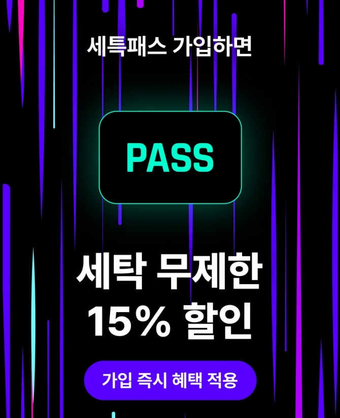 세특패스는 특정 품목과 횟수를 정해두지 않고 무제한으로 세탁비 15% 할인, 프리미엄 케어 20% 할인, 최대 3% 적립 혜택을 제공한다는 점이 경쟁력으로 꼽힌다. 또한 매월 세특패스 가입자만을 위한 시크릿 할인·적립 이벤트가 추가 된다. 1개월(5900원), 3개월(4900원), 6개월(4500원),12개월(4100원) 단위로 구독 가능하다.