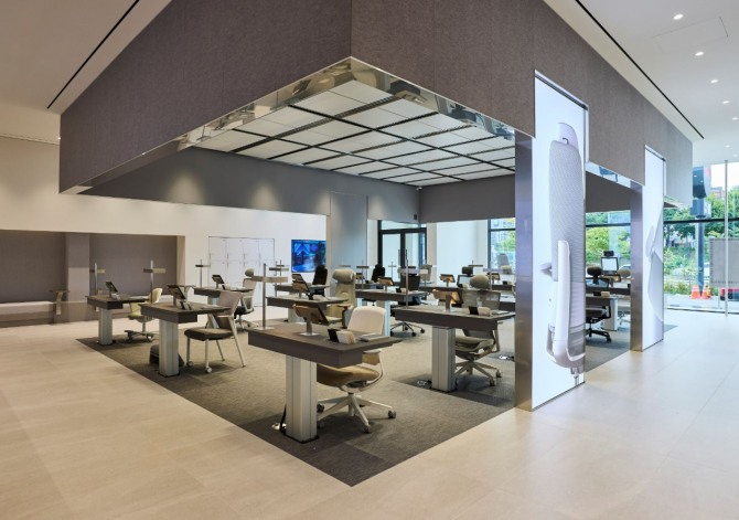 테이블마다 설치된 태블릿 PC를 통해 의자의 다양한 기능과 적용된 마감재, 색상 등 세밀한 피팅 옵션을 직접 확인해보며 자신의 취향에 맞는 의자를 고를 수 있다. 컨설팅 룸에서는 개인 고객부터 기업 고객(B2B)까지 고객의 니즈를 반영한 맞춤형 컨설팅을 제공한다.