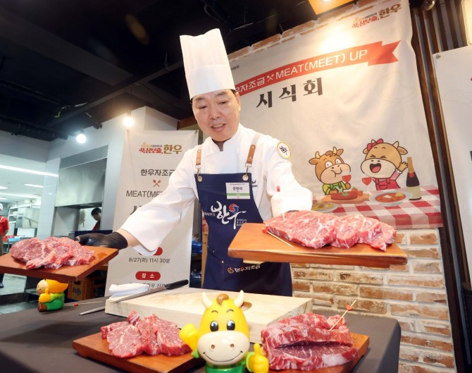 이번 시식회에서는 한우 명예홍보대사 윤원석 셰프(벽제갈비 장인)가 직접 한우 커팅 시연을 선보이고 거세우 및 암소의 맛 차이와 특징 등을 소개했다.