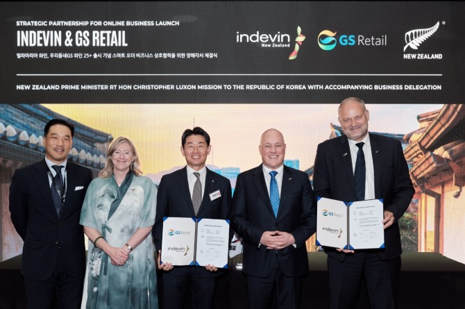 이미지 확대보기양사는 지난 4일 서울 중구 소재에 위치한 앰배서더 서울 풀만 호텔에서 열린 뉴질랜드 F&B 쇼케이스 행사에서 한국 내 뉴질랜드 와인 진출에 대한 업무협약(MOU)을 체결했다. 이날 협약식에는 이기철 GS리테일 가공MD부문장과 뉴질랜드에서 방한한 사이먼 리머 인디뱅 대표를 비롯한 주요 관계자들이 참석해 자리를 빛냈다.