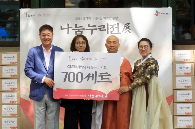 CJ프레시웨이 관계자는 “한가위를 맞아 취약계층 이웃들이 풍성한 명절을 즐길 수 있도록 대한불교조계종 조계사 등과 함께 따뜻한 마음과 정성이 담긴 간편식 상품 꾸러미를 준비하게 됐다”며 “앞으로도 사업 역량을 기반으로 지역사회와 함께 성장할 수 있는 다양한 형태의 사회공헌활동을 지속 확대해 나갈 것”이라고 말했다.