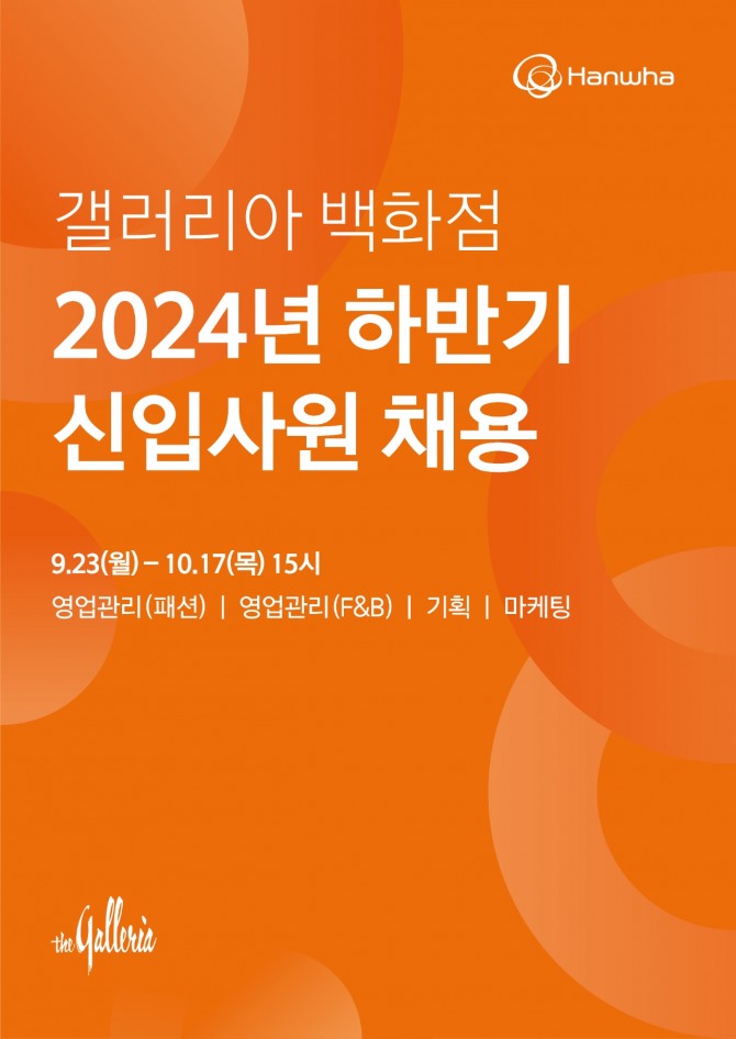 한화갤러리아 관계자는 “명품·패션·유통 산업에 대한 현장 경험과 관련 역량을 가진 인재들의 많은 지원을 기대한다”고 말했다.