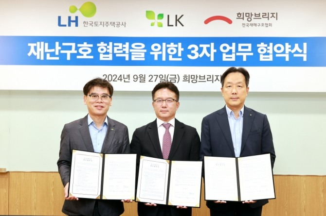 ㈜LK는 △5000만원의 재난구호기금 및 구호물품 조성 △재난구호 사업 홍보를, 희망브리지는 △재난구호기금 운용 △재난 구호시설 운영관리 △구호기금 및 물품전달 △지정기부 사업 추진 등에 협력할 계획이다.