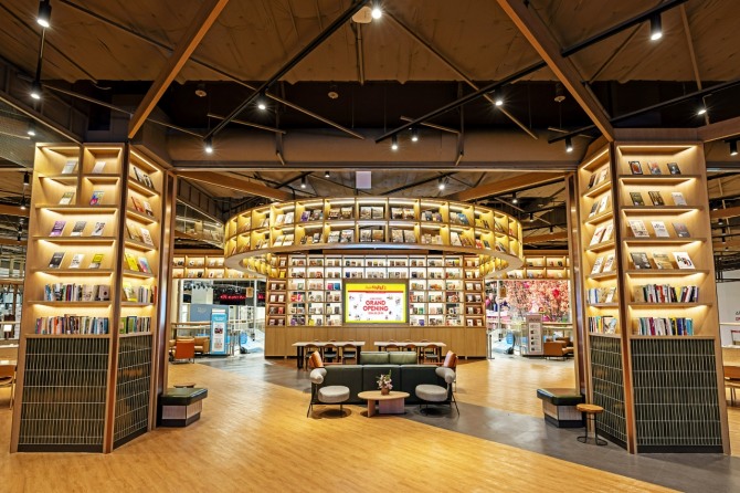 스타필드 마켓 죽전점은 기존 이마트 매장을 필수 구색으로 최적화해 효율을 높이는 대신, 1층 핵심 공간을 150평(약 495㎡) 규모의 북그라운드로 재구성했다. 고객들이 편히 머무르며 쉴 수 있는 라운지와 각종 행사, 공연 등을 즐길 수 있는 이벤트 스테이지 등이 어우러진 문화·휴식 특화 공간으로 조성했다.