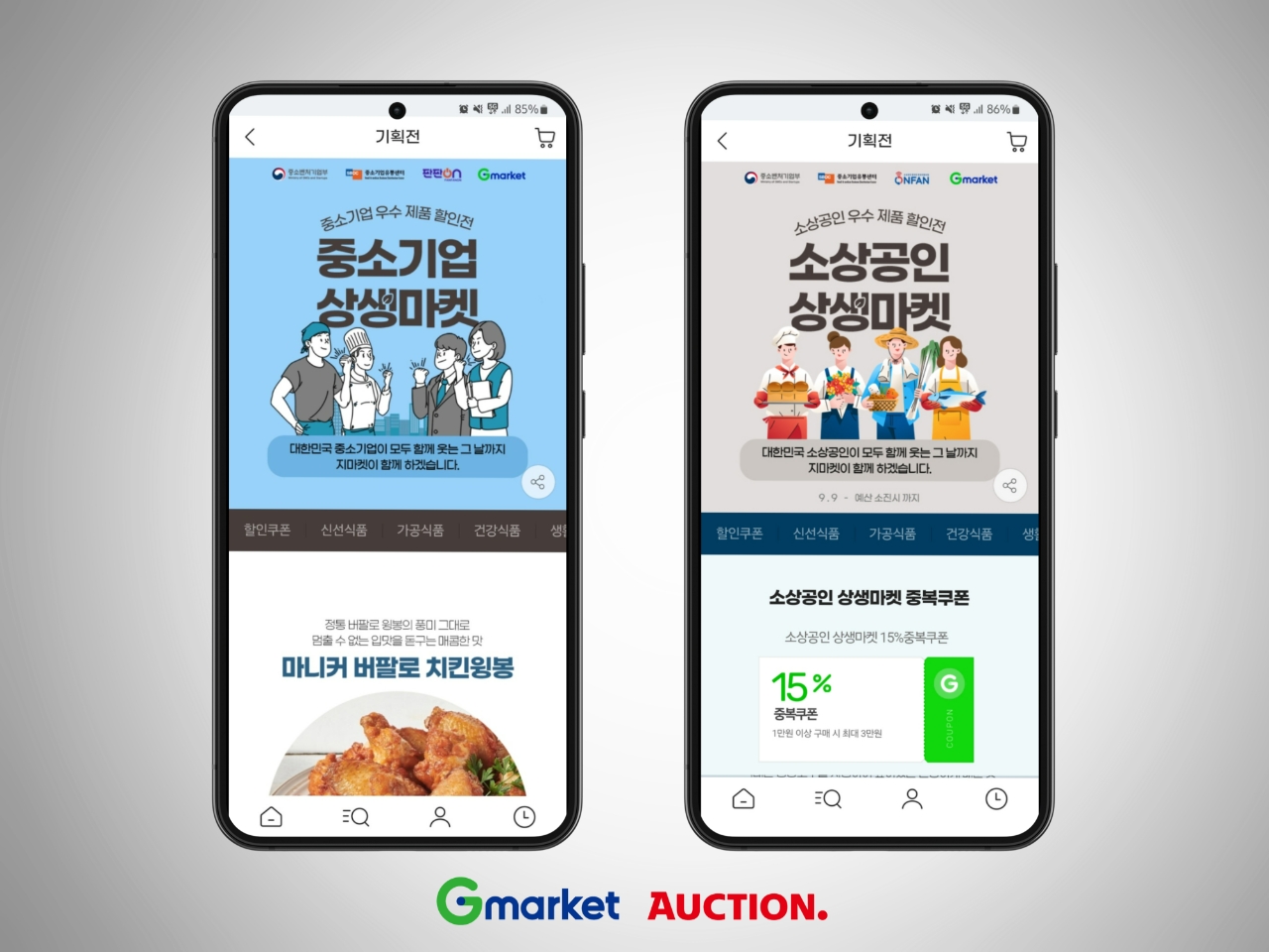 소비촉진을 위해 매일 선착순 5000명의 구매고객에게 1만원 이상 구매 시 최대 3만원까지 할인되는 ‘15% 중복쿠폰’을 ID당 매일 1회 제공한다. 소상공인 참여 셀러가 상생마켓이 열리는 중에도 추가되는 만큼, 새로운 상품을 계속 확인할 수 있다.