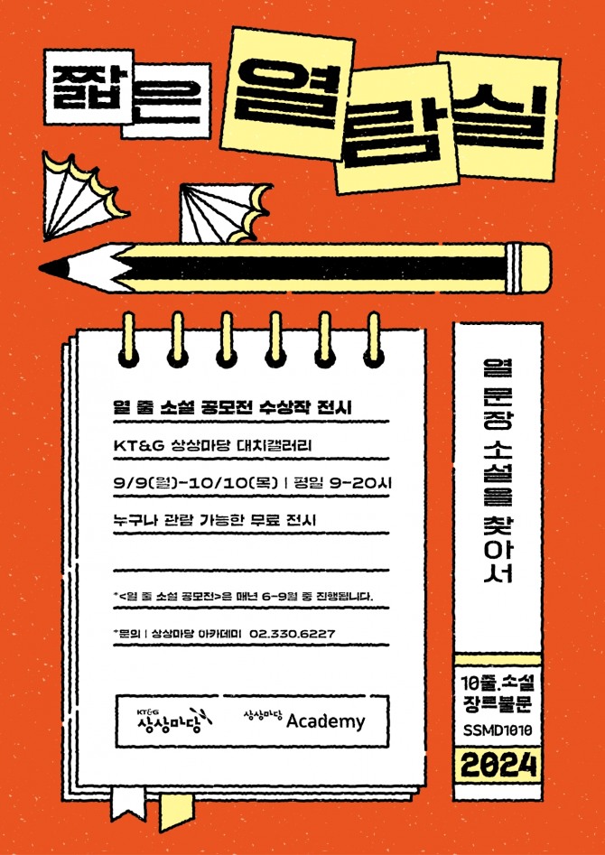이미지 확대보기3일 KT&G에 따르면 ‘열 줄 소설 공모전’은 지난 4년간 1만명 이상이 응모하고 1만2000여편의 작품이 투고되는 등 뜨거운 호응을 얻었다. 장르와 형식에 제한 없이 열 줄 안에 자신만의 이야기를 담아낼 수 있는 이 공모전은 문학을 사랑하는 모든 이들에게 열린 기회를 제공하며, 특히 신인 작가들에게는 데뷔의 발판이 돼주고 있다.