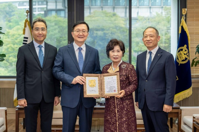 이미지 확대보기한국콜마는 지난 7일 서울대학교 관악캠퍼스에서 열린 기부금 전달식에서 서울대 발전재단에 인문대학 발전 기금 2억원을 기부하고 감사패를 받았다. 이날 행사에는 윤동한 한국콜마 회장의 부인인 김성애 여사와 최현규 한국콜마 대표이사, 유홍림 서울대학교 총장, 안지현 인문대 학장, 김기현 발전재단 부이사장 등이 참석했다.