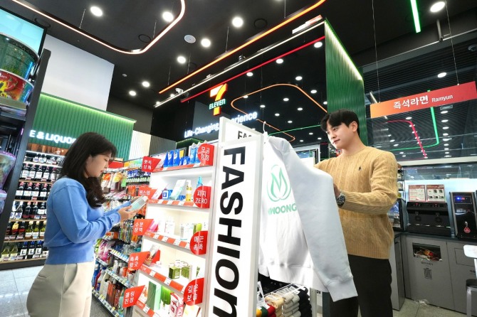 특히 패션‧뷰티에 시선이 간다. 지난달 27일 선보인 패션·뷰티 특화 점포 ‘세븐일레븐 동대문던던점’의 컴팩트 버전으로 선보였다. 전문 뷰티 매장의 샵인샵 분위기를 연출하는 전용 진열대를 별도 구성했고, 오직 세븐일레븐에서만 만나볼 수 있는 차별화 상품들을 주로 구성하되 일반 점포의 공간적 특성을 고려해 상품 구색은 집약적으로 운영한다.