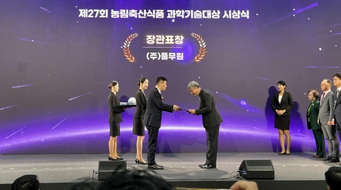 풀무원은 기후 변화 등 변동성이 큰 농업 환경에 적합한 콩나물콩 신품종 개발과 보급 확산, 제품화 노력을 인정받아 농식품부 장관 표창을 수상했다. 농림식품기술기획평가원은 풀무원의 수상에 대해 “안정적인 생산이 가능한 콩나물콩 신품종 보급과 품질 향상으로 농가 손익 증진과 국산콩 생산 기반 확대에 기여할 수 있을 것으로 기대한다”고 말했다.