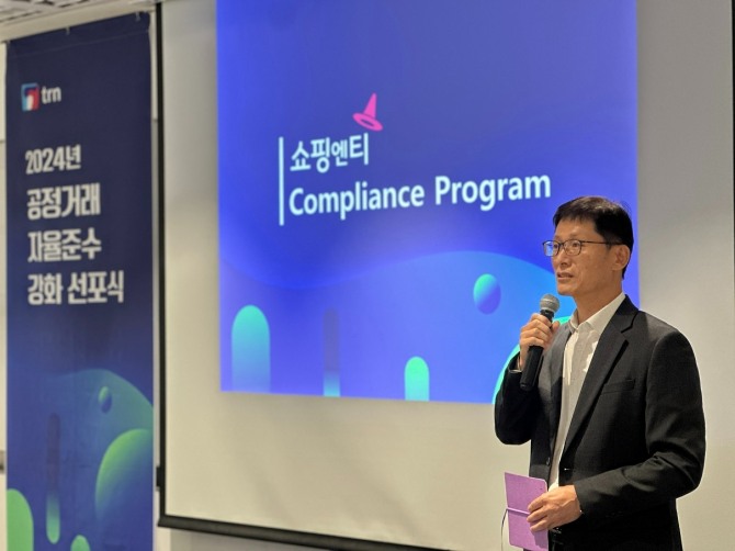 이날 쇼핑엔티 CP 선포식은 컴플라이언스 조정원 이원기 원장의 CP구축 및 운용실무 특강을 시작으로 한상욱 대표의 준법경영 강화 메시지, 준법강령 실천 서약식, 공정거래 슬로건 수상식 순서로 진행됐다.