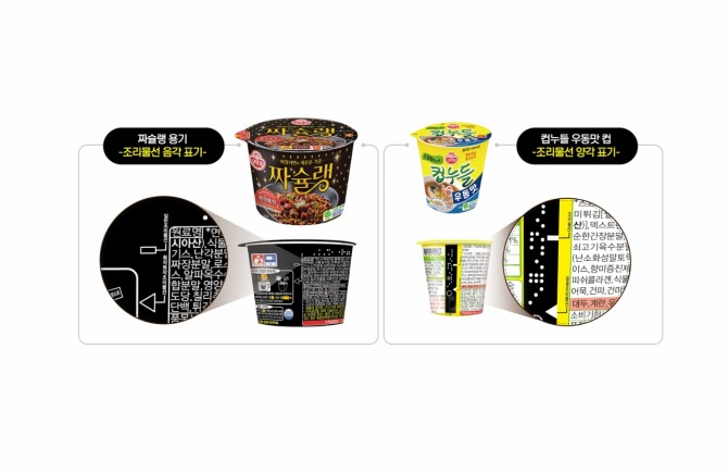 현재 점자표기는 용기면/컵면 전 제품 70종, 컵밥 35종, 용기죽 10종, 케챂 6종, 마요네스 10종에 적용된 상태다.