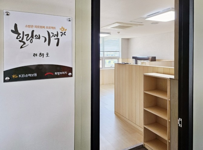 이미지 확대보기‘힐링의 기적’은 KB손해보험과 2016년부터 진행한 사회공헌 사업이다. 119안전센터 내 활용도 낮은 공간을 리모델링하고 △안마의자 △척추 마사지기 △리클라이너 소파 △공기청정기 △스마트TV 등을 지원한다. 현재까지 전국 91개소를 설치·지원했다.