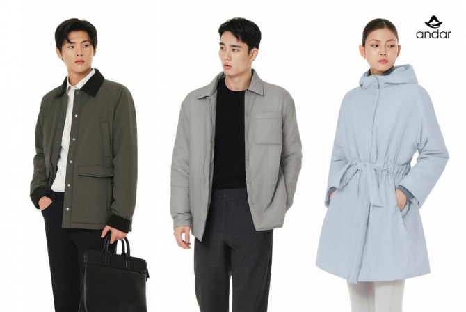 이미지 확대보기지금부터 초겨울까지 부담없이 착용할 수 있는 ‘프리마로프트 매트웜 패딩 자켓’과 ‘프리마로프트 시티웜 패딩자켓’, ‘프리마로프트 윈터 윈드자켓’을 시작으로 한겨울도 거뜬한 고기능성 방한 제품을 순차적으로 선보일 방침이다. 안다르의 강점을 살려 어떠한 의상과도 잘 어울리는 디자인으로 겨울을 멋스럽게 보낼 수 있도록 각별히 신경 썼다.