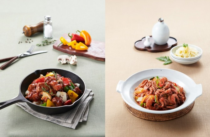 이미지 확대보기19일 CJ프레시웨이에 따르면 간편조리 레시피는 △특제 소스 △양념육 △국탕용 베이스 △전처리 채소 등 조리효율화 식재료를 활용한 조리법을 일컫는다. CJ프레시웨이 보유 레시피는 2000여종이며 올해 중으로 약 150종을 추가할 계획이다.