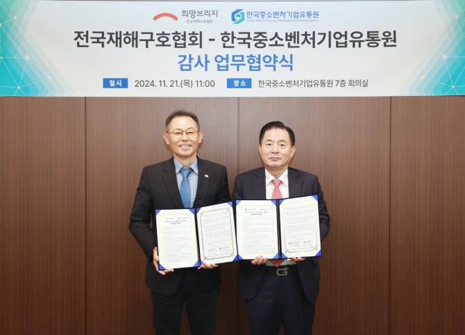 이미지 확대보기21일 희망브리지에 따르면 이날 협약식에는 희망브리지 진세근 상임감사와 한국중소벤처기업유통원 이목희 상임감사 등이 참석했다.