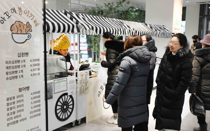 이미지 확대보기9일 홈플러스에 따르면 메가 푸드 마켓 라이브 강서점은 지난 2일부터 1층 매장 주출입구에 십원빵, 붕어빵 등을 판매하는 지역 브랜드 ‘아미꼬 붕어빵’을 팝업스토어로 운영하고 있다.