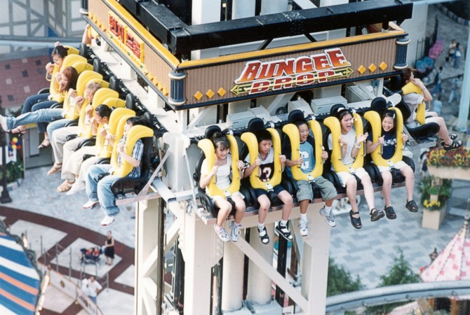 이미지 확대보기13일 롯데월드에 따르면 ‘번지드롭’은 지난 2000년 7월 롯데월드 어드벤처가 당시 35억원을 투자해 새롭게 선보인 어트랙션으로, 탑승물을 높이 끌어 올린 뒤 자유낙하를 하는 드롭형 기종이었다. 특히 출발과 동시에 탑승물이 32m의 높이를 최고 시속 72㎞의 속도로 올라가, 상승과 낙하를 3회 반복하는 방식으로 스릴 어트랙션 마니아들에게 호평을 받았다.