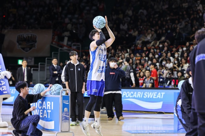 최고의 슈터를 가리는 ‘포카리스웨트 3점슛 콘테스트’에는 총 14명이 참가했다. 지난 시즌 올스타전 3점슛 콘테스트 우승자 이근휘(KCC)와 올해 신인 선수인 정성조(소노)를 비롯해 허웅(KCC), 양준석(LG) 등 쟁쟁한 경쟁자들이 모두 출전했다.