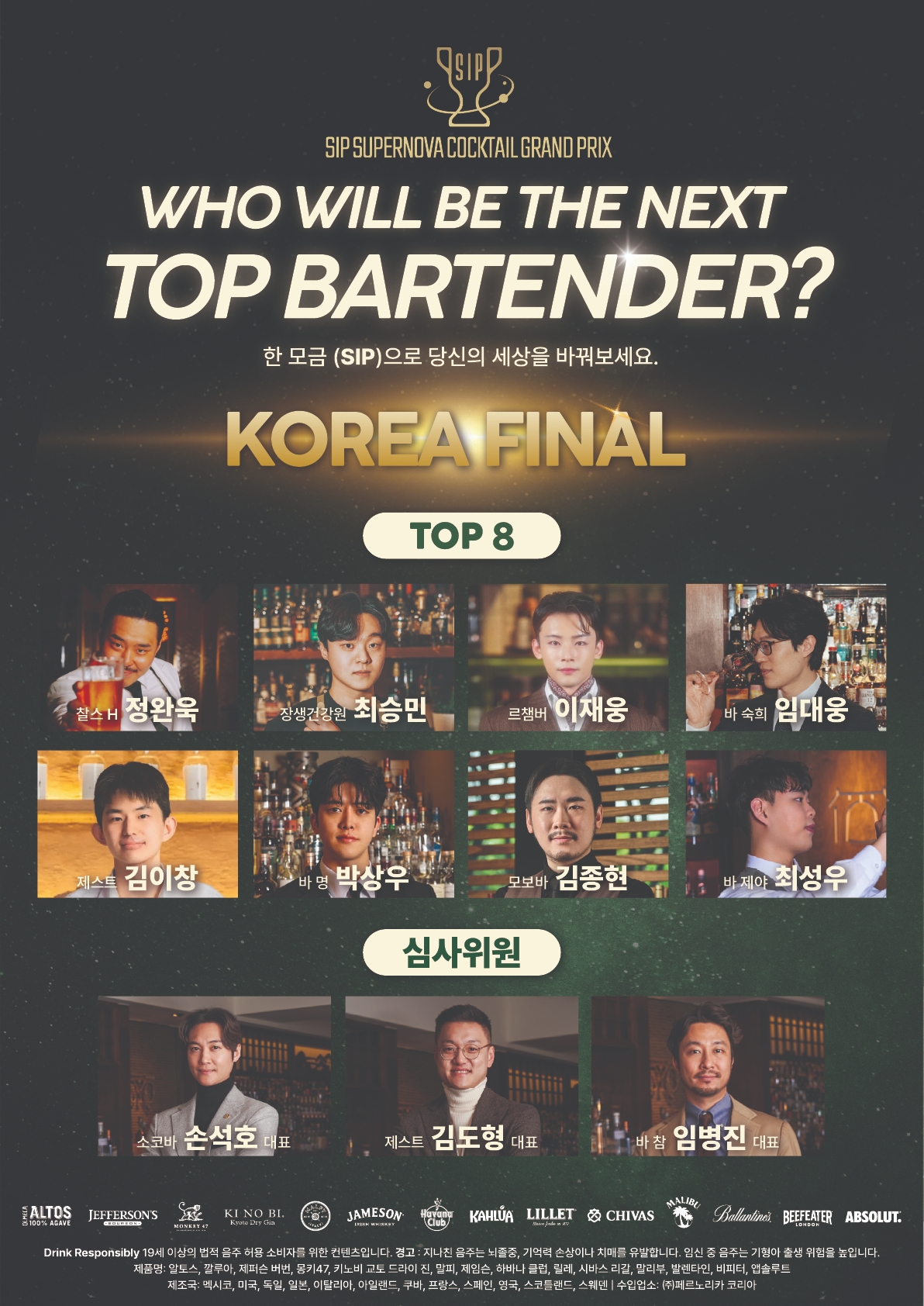 결선에는 월드베스트 및 아시아베스트 바에 선정된 제스트의 김도형 바텐더, 바 참의 임병진 바텐더, 소코바의 손석호 바텐더 등 업계에서 인정받은 스타 바텐더들이 심사위원으로 참여하는 것은 물론, TOP 8와 함께 세 명의 스타 바텐더가 선보이는 특별 칵테일 세션도 준비되어 있어 눈과 입을 동시에 사로잡는 칵테일 쇼잉을 선보일 예정이다.