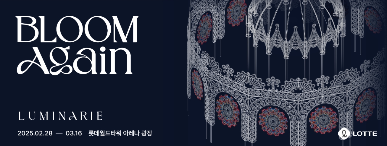 27일 롯데물산에 따르면 28일부터 롯데월드타워 아레나 광장에 지름 20m, 높이 12m 규모의 루미나리에 조형물이 설치된다. 13개의 벽을 연결해 중앙 돔을 둥글게 감싼 형태로, 원형 회랑 구조를 통해 화합을 상징한다.