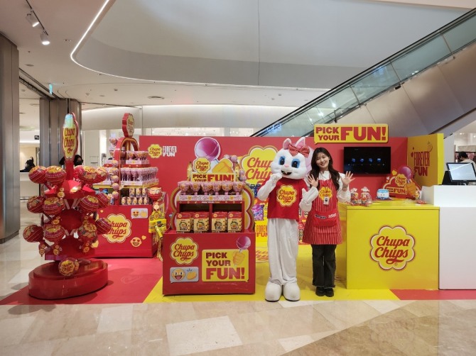 이미지 확대보기12일 농심에 따르면 츄파춥스 팝업스토어에서 츄파춥스 벚꽃 에디션, 브레드이발소 기획세트 등 한정판 제품을 선보이고, 초대형 크기로 시선을 사로잡는 츄파춥스 슈퍼메가와 1m 길이의 사워벨트 젤리 등 개성있고 독특한 제품도 준비했다.