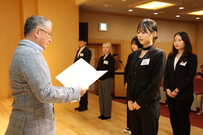 이미지 확대보기2일 오뚜기에 따르면 재단법인 오뚜기함태호재단 임원들과 2025년 신규 장학생 57명이 참여한 가운데 열린 이날 행사는 개회 및 장학증서 수여, 오뚜기함태호재단 함영준 이사장의 격려사 등의 순으로 진행되었다. 함영준 오뚜기함태호재단 이사장이 학생들에게 장학증서를 전달했으며, 57명의 장학생들은 오뚜기함태호재단으로부터 2년간 학비 전액 장학금을 지원받게 된다.