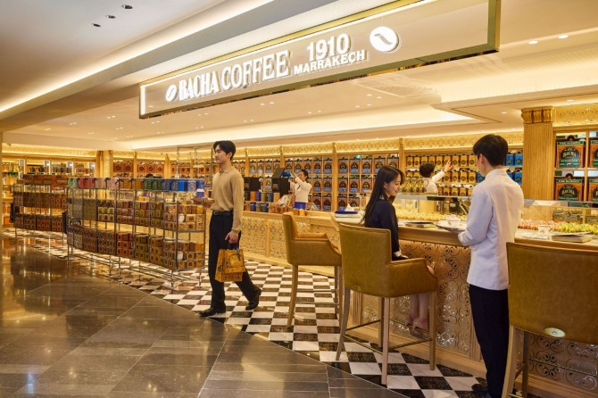 이미지 확대보기‘바샤커피’ 2호 매장은 본점 3층에 위치했다. 다양한 원두와 드립백, 커피 액세서리 등을 판매하는 ‘커피 부티크’와 고객들이 앉아서 커피를 즐길 수 있는 15석 규모의 ‘커피바’로 구성됐다. 200여종 이상의 최고급 100% 아라비카 커피와 정교한 커피 악세서리, 커피와 페어링하기 좋은 페이스트리 메뉴를 통해 바샤커피의 프리미엄 경험이 가능해졌다.