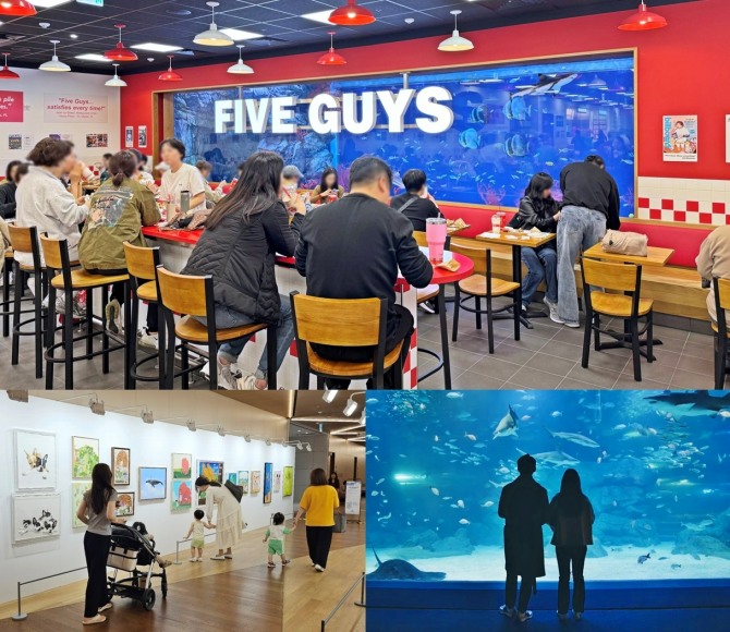 아쿠아리움의 일부가 파이브가이즈 매장 안으로 들어오면서 바로 옆에 자리잡은 아쿠아플라넷 광교에도 고객들의 발길이 이어졌다. 아쿠아플라넷에 따르면 이 기간 방문객은 전년 동기 대비 20% 이상 증가한 것으로 나타났다.