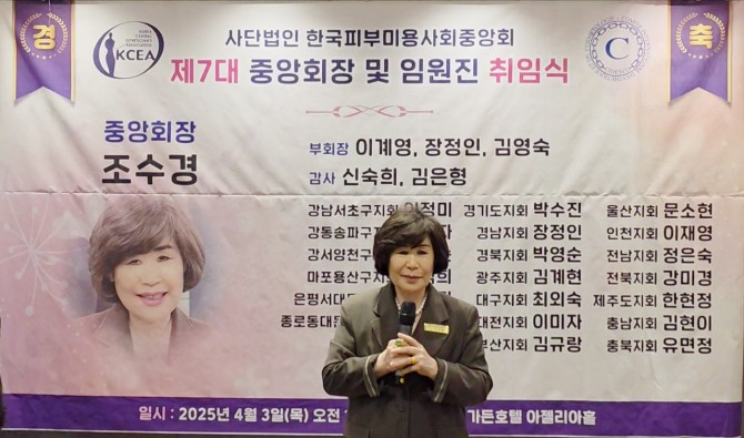 이미지 확대보기18일 한국피부미용사회중앙회에 따르면 지난 3일, 제7대 조수경 중앙회장 및 대표이사 취임식과 함께 임원 임명식이 진행됐다. 이 자리에서 이계영, 장정인, 김영숙 부회장이 임명됐으며, 감사직에는 신숙희 감사장과 김은형 감사가 각각 선임됐다.