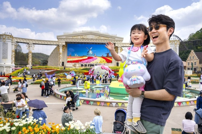 이미지 확대보기23일 에버랜드에 따르면 100여 종 약 120만 송이의 봄꽃과 함께 시나모롤, 헬로키티, 포차코 등 산리오캐릭터즈를 오감으로 체험할 수 있는 튤립축제를 3월 21일부터 5월 11일까지 선보이고 있다.