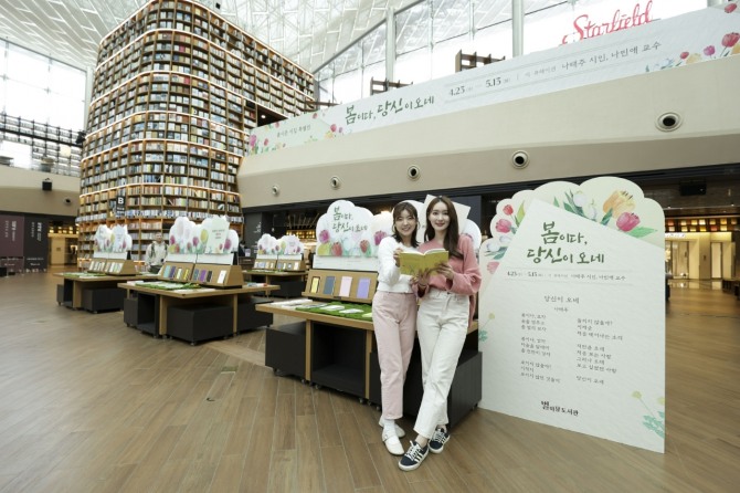 이미지 확대보기문화와 예술, 책을 주제로 소통하는 ‘열린 문화 공간’ 스타필드 코엑스몰 별마당 도서관이 시(詩)와 꽃내음이 어우러진 ‘문학 정원’으로 변신, 봄의 초대장을 전한다.