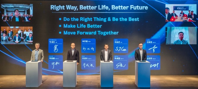 핵심 실천지침은 △올바르게 일하며 최고를 지향한다(Do the Right Thing & Be the Best) △사람들의 삶을 이롭게 한다(Make Life Better) △모든 이해관계자와 함께 성장해 나간다(Move Forward Together)로 정했다.