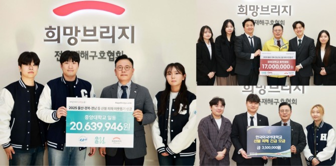 희망브리지 신훈 사무총장은 “바쁜 학업 중에도 피해 이웃을 위해 따뜻한 마음을 보내준 대학생 여러분께 깊이 감사드린다”며 “기부금은 산불 피해 지역 주민들의 일상 회복과 복구 지원에 소중히 사용될 예정”이라고 밝혔다.