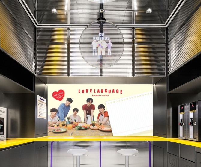 이번 팝업스토어는 팬 참여형 콘텐츠를 중심으로 투모로우바이투게더와 팬, CU가 소통하는 공간으로 구성됐다. 매장 내외부는 투모로우바이투게더 사진과 최근 발매된 디지털 싱글 'Love Language' 메인 이미지로 꾸며졌다. 자유롭게 사진 촬영이 가능한 포토존을 마련했으며 CU 올림픽광장점에는 아티스트 메시지 코너도 준비됐다.