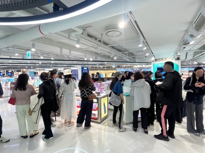 대부분 관광객들의 발길은 K-뷰티 브랜드 매장으로 집중됐다. 신라면세점 2층 K브랜드관 중 ‘올리브영 익스클루시브’, ‘리쥬란’ 등은 북적이는 인파로 직원과 대화조차 어려울 정도였다. 지나가는 중국인 관광객들은 대부분 “한국 화장품을 사러 왔다”고 말했다. 중국 현지보다 저렴한 가격을 장점으로 꼽았다.