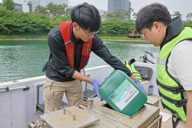 27일 롯데그룹에 따르면 이번 협약에 따라 롯데는 수질 개선 사업 기금 조성과 현장 업무를 지원하고, 송파구청은 행정 업무를 지원한다. 녹색미래는 수질 관리와 검수를 수행하고, 젠스는 수질 개선 작업을 진행한다. 석촌호수에서 수질 정화 선박을 운행해 주 2회 정화 작업을 실시하며, 빛에 의해 화학 반응을 일으키는 광촉매를 활용해 수중 오염 물질을 저감하는 방식이다.