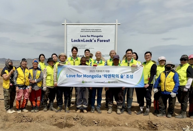 이미지 확대보기4일 락앤락에 따르면 최근 글로벌 환경 NGO 단체인 푸른아시아와 기후 위기 대응을 위한 업무 협약을 체결하고, 몽골 사막화 방지 사업을 추진했다. 기후 변화로 인해 피해가 가장 심각한 곳 중 하나인 몽골 ‘투브 아이막 바양항가이 솜’ 지역에 비타민 나무, 비술 나무 등 1004그루 나무를 식재해 ‘락앤락의 숲’을 조성했으며, 이를 통해 생태 복원뿐만 아니라, 지속적인 관리를 통해 기후난민들이 자립할 수 있는 터전을 만드는데 기여할 예정이다.