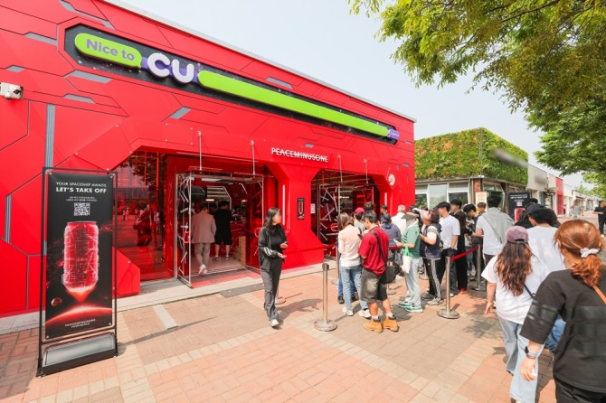 CU는 상품 세계관을 반영해 CU 올림픽광장점 전체를 우주 정거장 콘셉트로 꾸몄다. 점포를 제품과 동일한 컬러로 디자인해 통일감을 주었고 조형물과 셀카존 등 체험 요소를 매장 곳곳에 설치해 볼거리를 더했다.